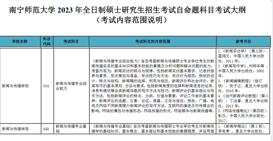 全国统考和联考科目的命题工作由教育部考试中心统一组织。统考科目考试大纲由教育部考试中心统一编制;联考科目考试大纲由教育部考试中心或教育部指定相关机构组织编制。我校初试科目中的自命题科目考试大纲详见《南宁师范大学2023年全日制硕士研究生招生考试科目考试大纲(含参考书目)》(附件2)。