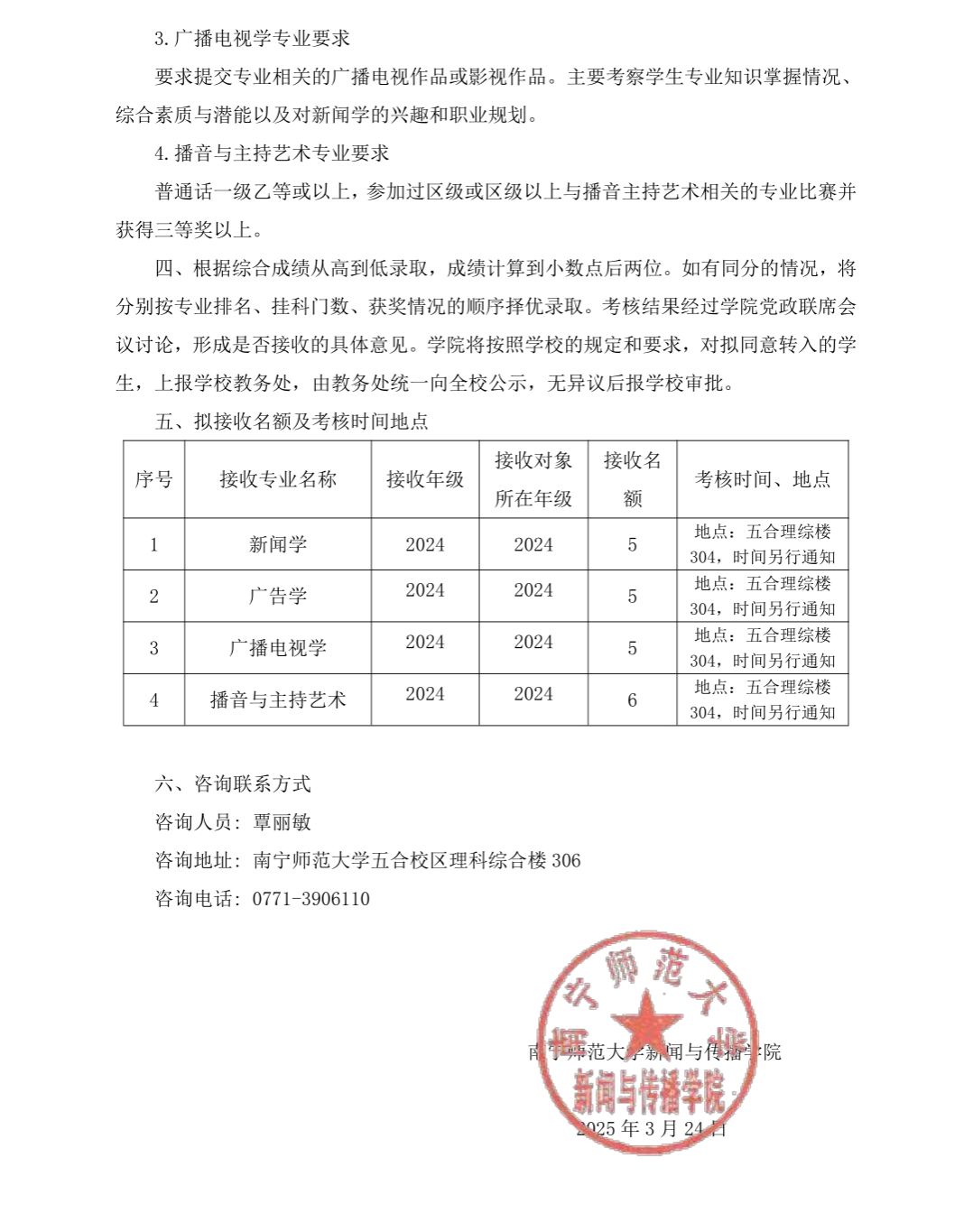 新闻与传播学院2025年全日制普通本科学生转专业工作方案