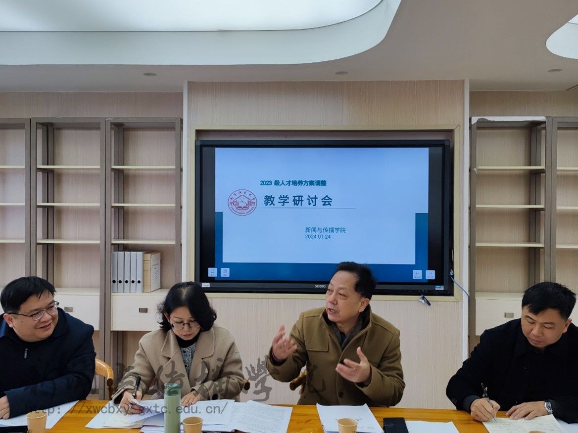 1月24日上午,南宁师范大学新闻与传播学院邀请了广西本科高校新闻传播学类教学指导委员会主任刘洪教授、广西民族大学传媒学院院长杨学明教授、李琳副教授、广西艺术学院影视与传媒学院副院长罗奕教授作为专家,对我院新闻学、广播电视学、广告学、播音与主持四个专业的人才培养方案进行了指导修改,在文星楼会议室召开了座谈会。学院领导、各专业负责人、教师代表参加了会议。