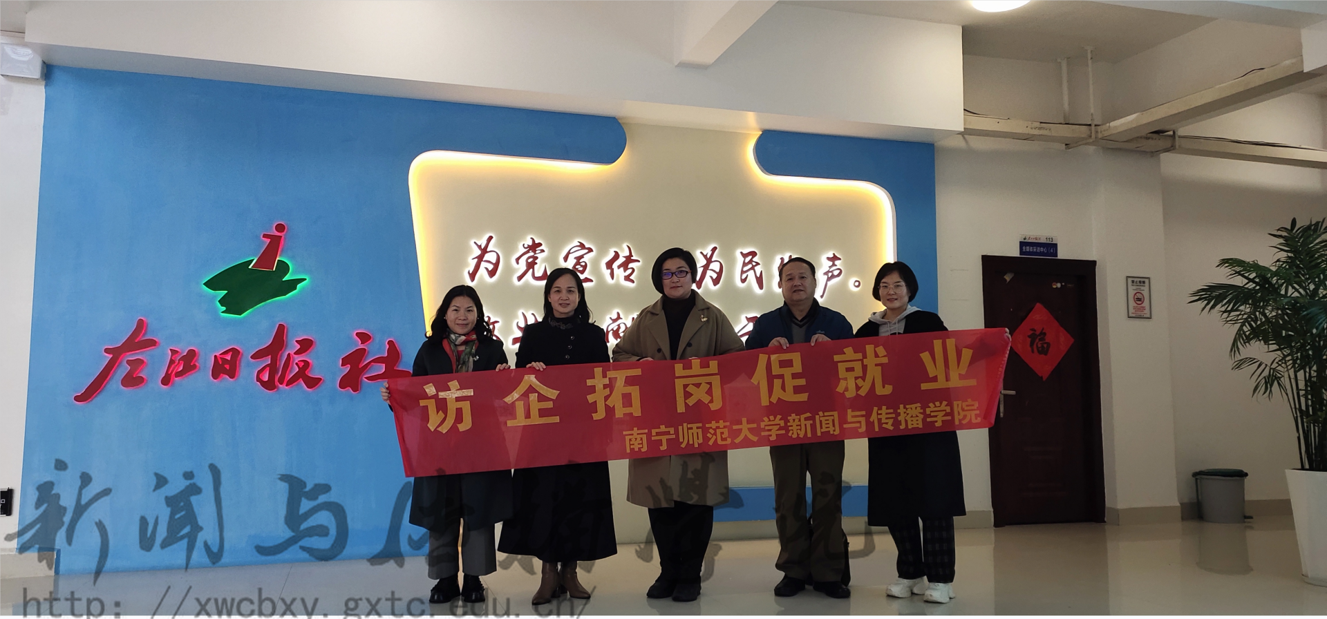为进一步深化校企合作成效,积极拓展就业市场,在新闻与传播学院党委书记聂卉的带领下,新闻系主任林秀梅、广电系主任陈秋凌、广告系教师宋丽丽、播主系教师孟宪林等一行人员于2024年1月22日赴左江日报社以及崇左广播电视台开展访企拓岗。