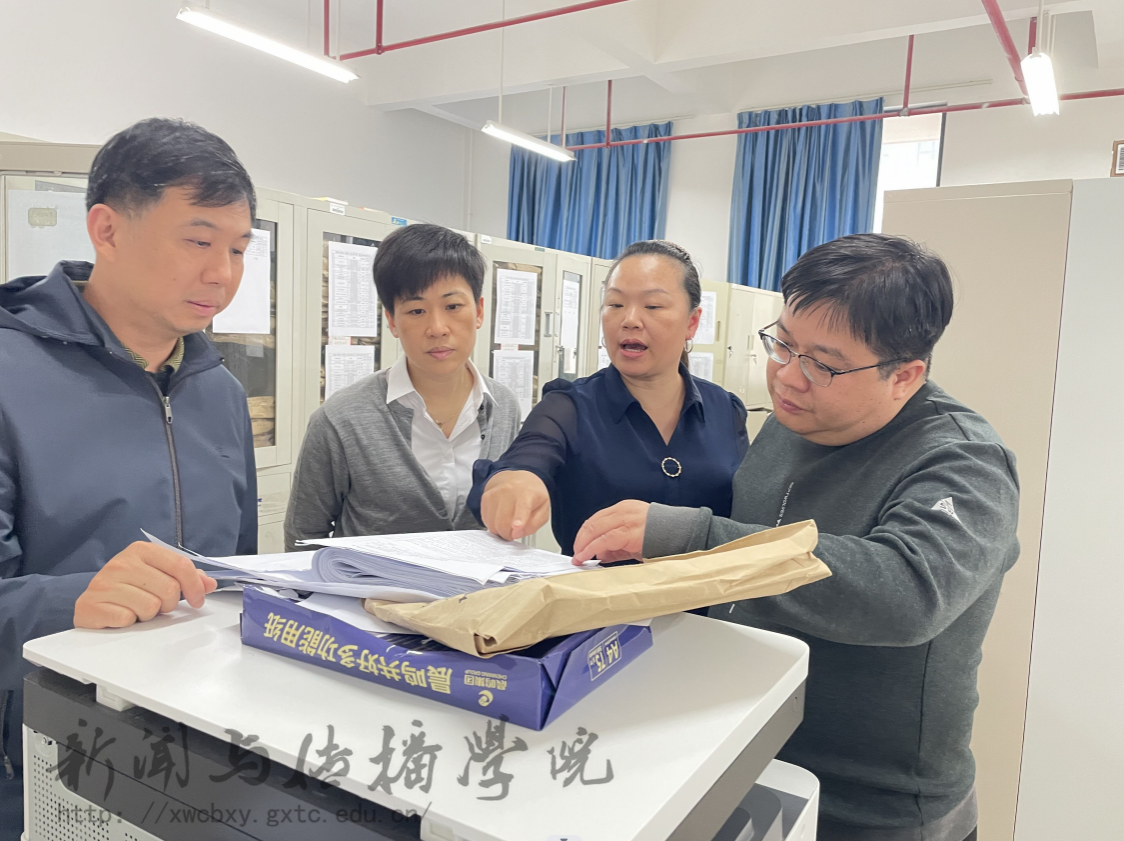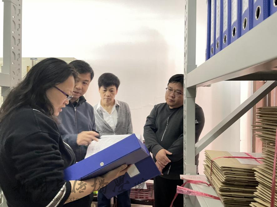 参观结束后,学院领导和老师来到学院档案室,实地查看环境和工作条件,就评估材料上架问题展开现场讨论,并作出具体工作布置。