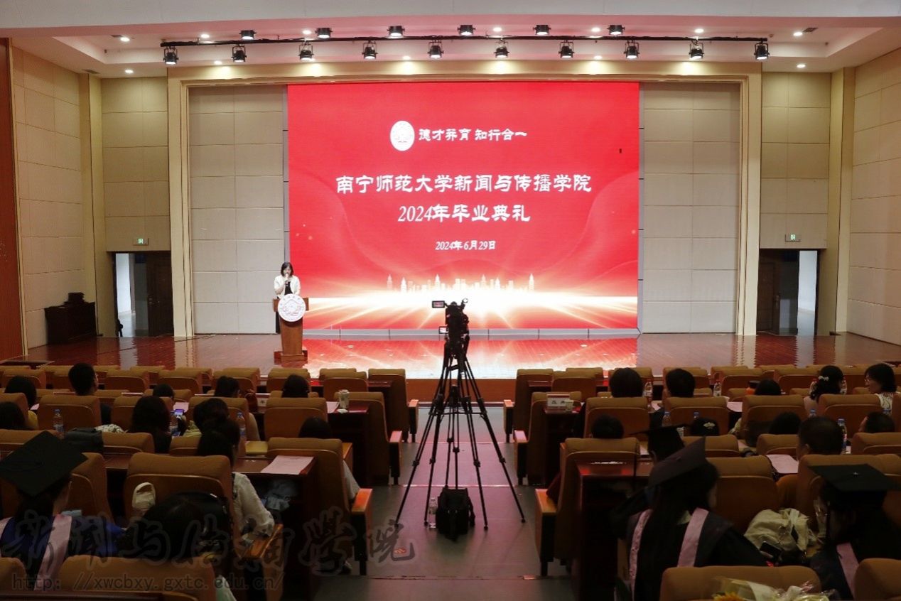 6月29日上午,新闻与传播学院在文综楼114报告厅举行2024年毕业典礼。学院党委书记聂卉、党委副书记黄敏、副院长梁颖涛、副院长周飞伶,学术委员会委员,各系主任、20级班主任、学工办辅导员、毕业生家长代表及2024届毕业生参加典礼。典礼由黄敏副书记主持。