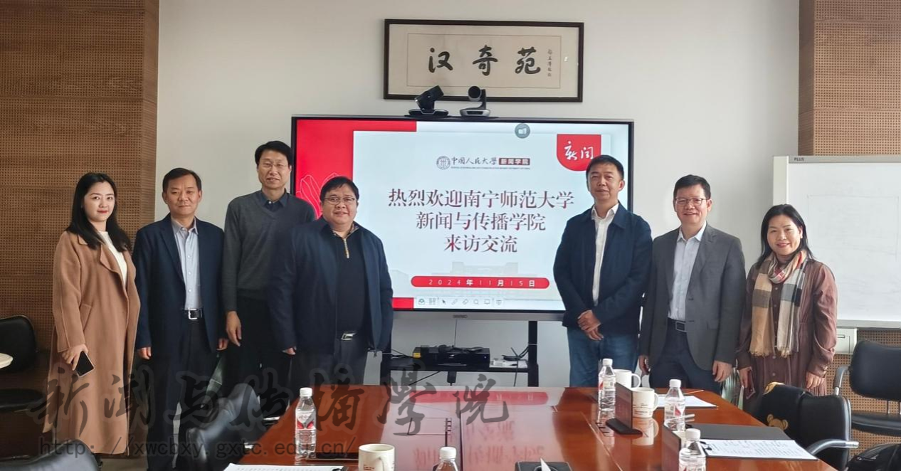 此次访问旨在通过面对面的交流与探讨,深入了解中国人民大学新闻学院在新闻传播学学科建设、博士点建设、科研创新及人才培养等方面的成功经验和做法,为南宁师范大学新闻与传播学院未来的发展提供有益的参考和启示。