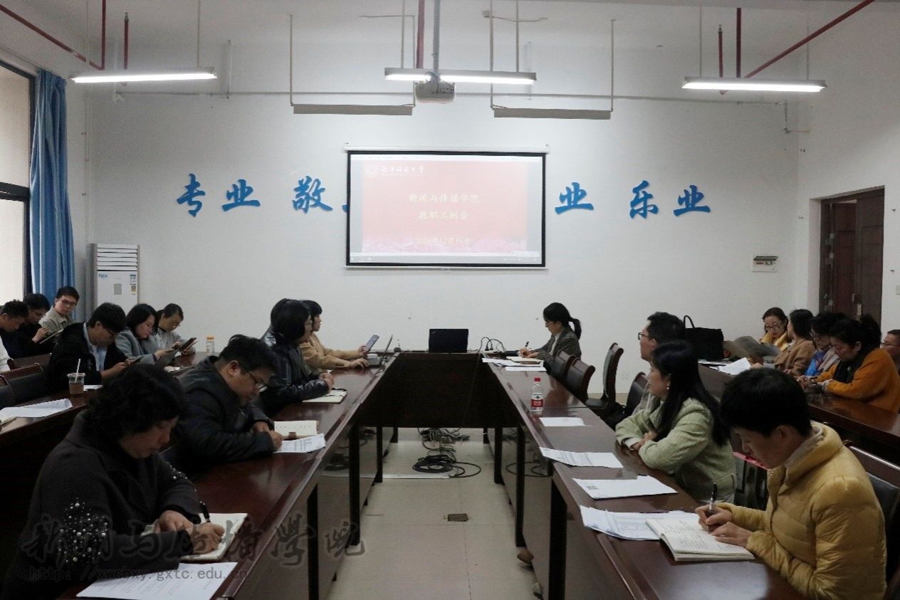 12 月 10 日下午,新闻与传播学院在理综楼 304 室召开教职工例会。会议由学院党委书记聂卉主持,学院领导班子以及全体教职工参会。