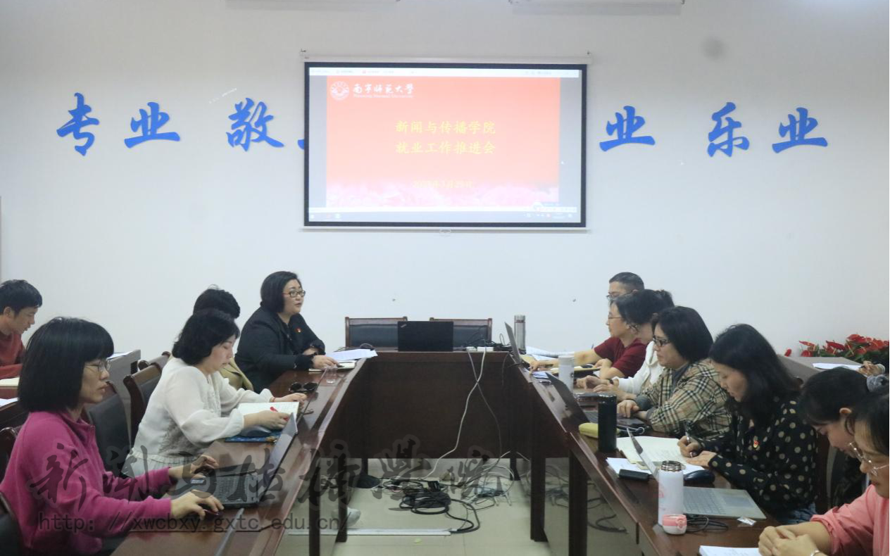 3月25日下午,新闻与传播学院在理综楼304会议室召开本学期第三次就业工作推进会,学院主要领导和学院全体教职工参加会议。会议由学院党委书记聂卉主持。