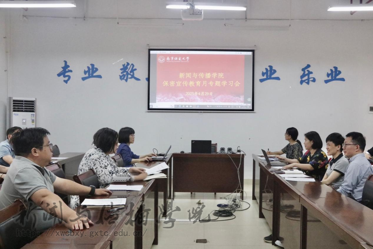 4月29日下午,新闻与传播学院在理综楼304会议室召开保密宣传教育月专题学习会。会议由学院党委书记聂卉主持,学院主要领导和全体教职工参加会议。