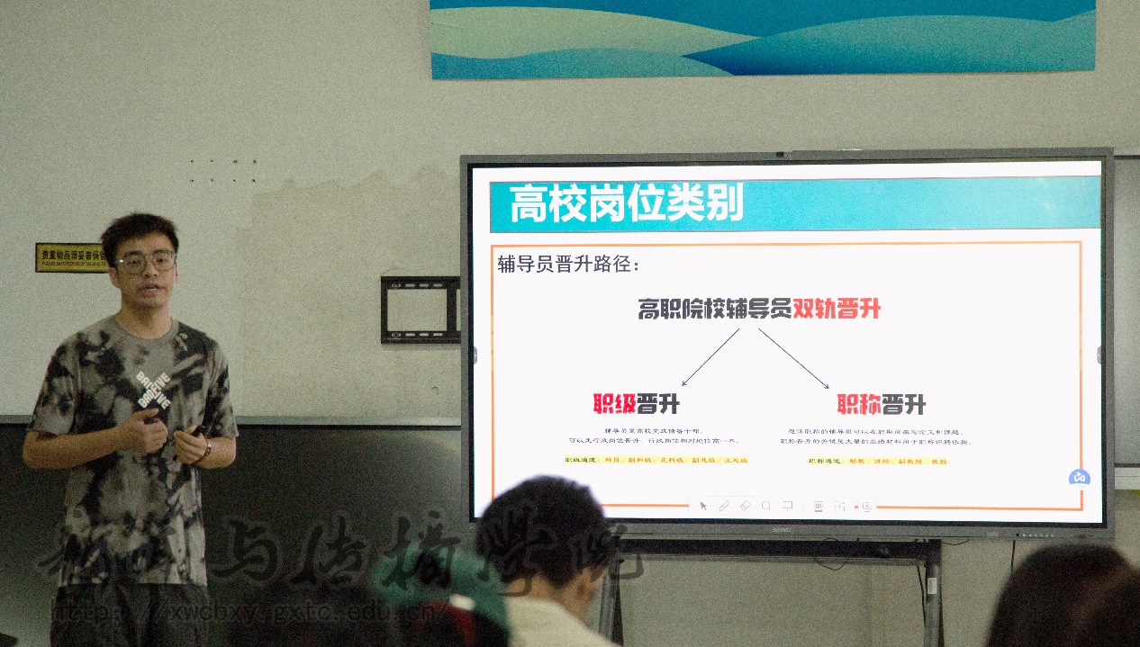 会上,陈鸣学姐就自身丰富的工作经验和学习经历,围绕未来学业规划与工作发展方向等同学们普遍关心的问题,详细讲解了报考高职院校形势与条件,提出了本科阶段和研究生阶段的规划建议。林海根学长就如何备考高校岗位等方面进行分享,有针对性地回答了同学们的困惑。最后,同学们踊跃举手提问,学姐学长耐心回答了同学们的问题。