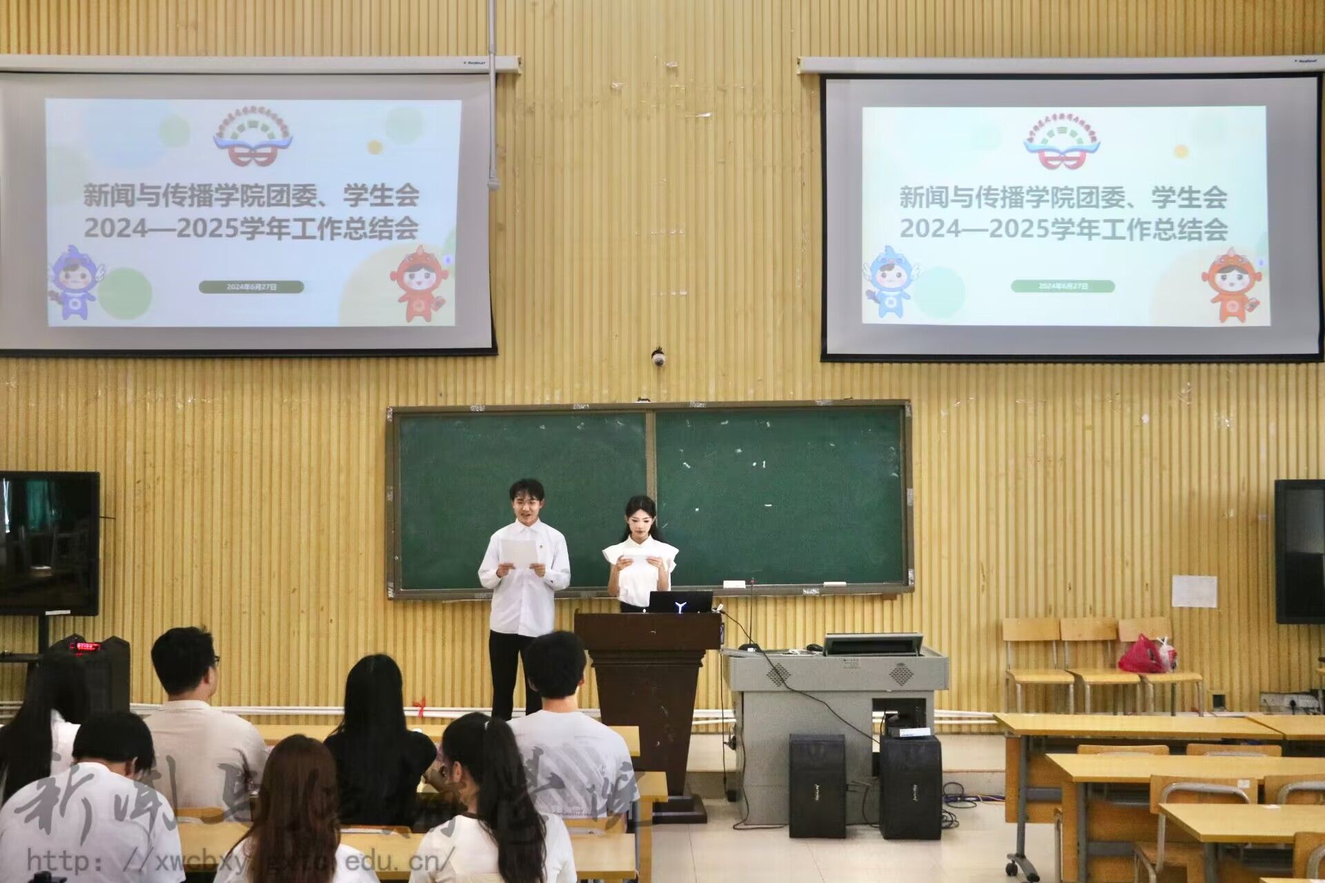 6月27日下午,新闻与传播学院在五综107教室召开2024-2025学年团委学生会工作总结会。学院团委书记李樱花,学工办辅导员兰浩玮参加本次会议。