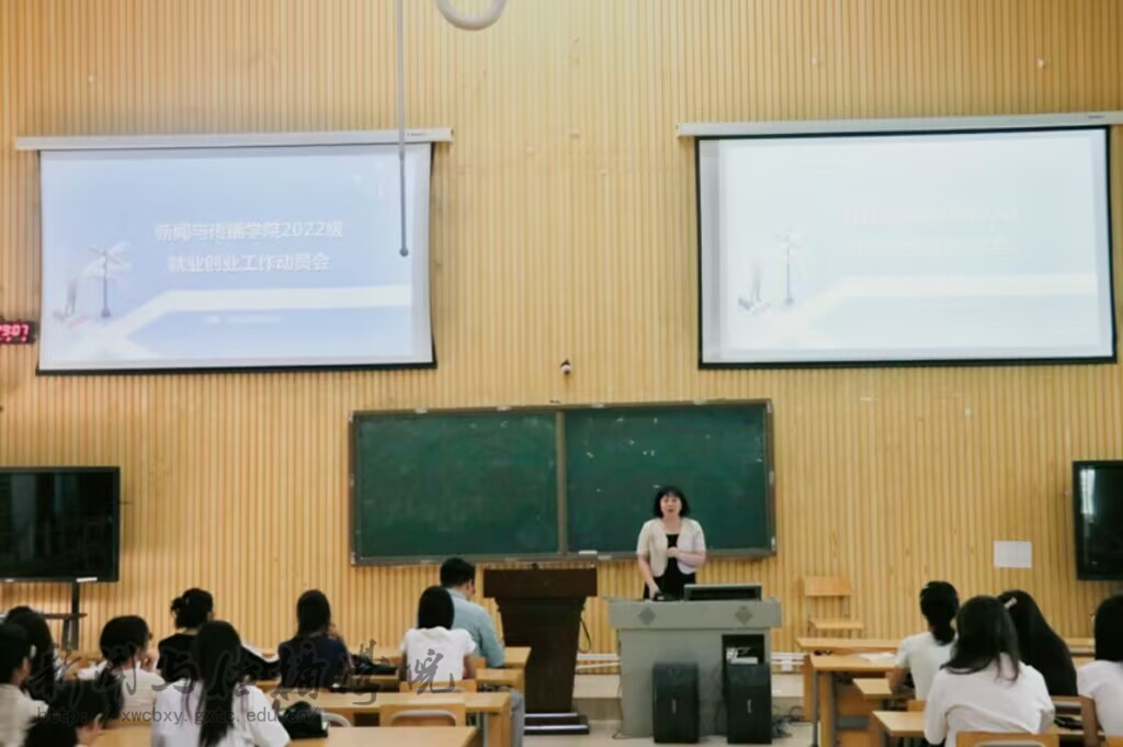 7月2日下午,新闻与传播学院在五综107教室召开2022级就业创业工作动员大会,学院党委副书记黄敏、学工办辅导员兰浩玮、22级全体同学参与本次大会,会议由党委副书记黄敏担任主讲。