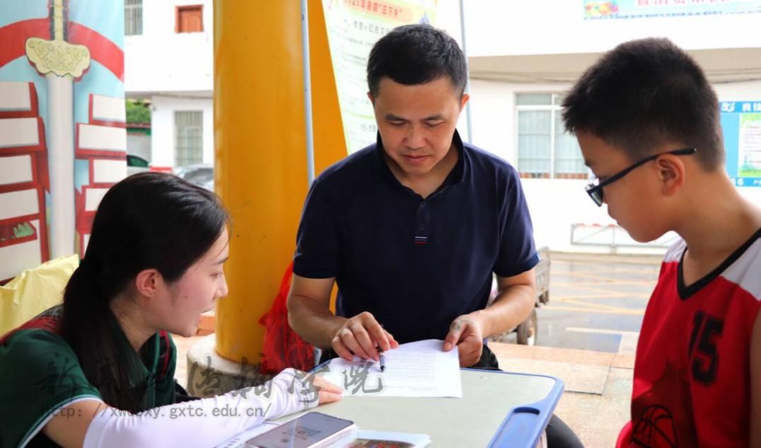 中午,“语”你同行实践团抵达邕宁区新江镇中心小学后,即赶赴新江镇文化广场开展学员招募。该活动引发广泛关注,家长和学生报名踊跃。据统计,本次活动成功招募40余名小朋友参与。