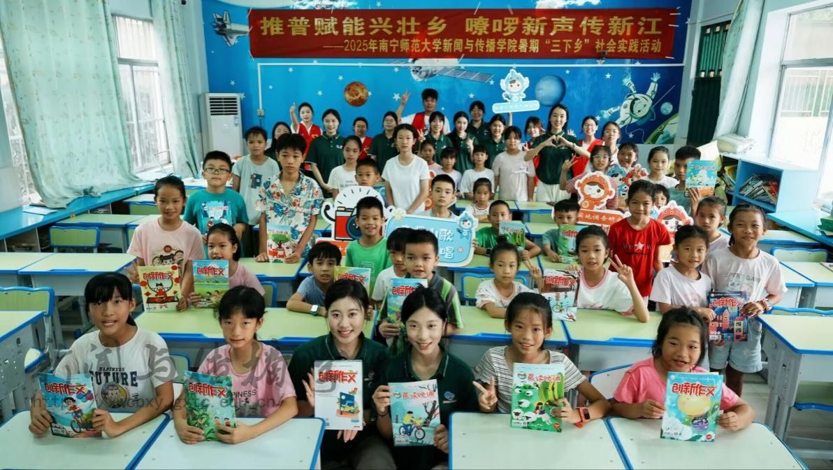 本次“‘语’你同行”实践团由南宁师范大学新闻与传播学院12名本科生和6名研究生组成,成员来自广西、湖北、湖南、江西等多省份,共同为广西农村地区推广普通话贡献力量。该团队项目成功入选2025年“推普助力乡村振兴”全国大学生暑期社会实践志愿服务活动重点团队名单,也是南宁师范大学2025年大学生暑期“三下乡”社会实践重点团队。