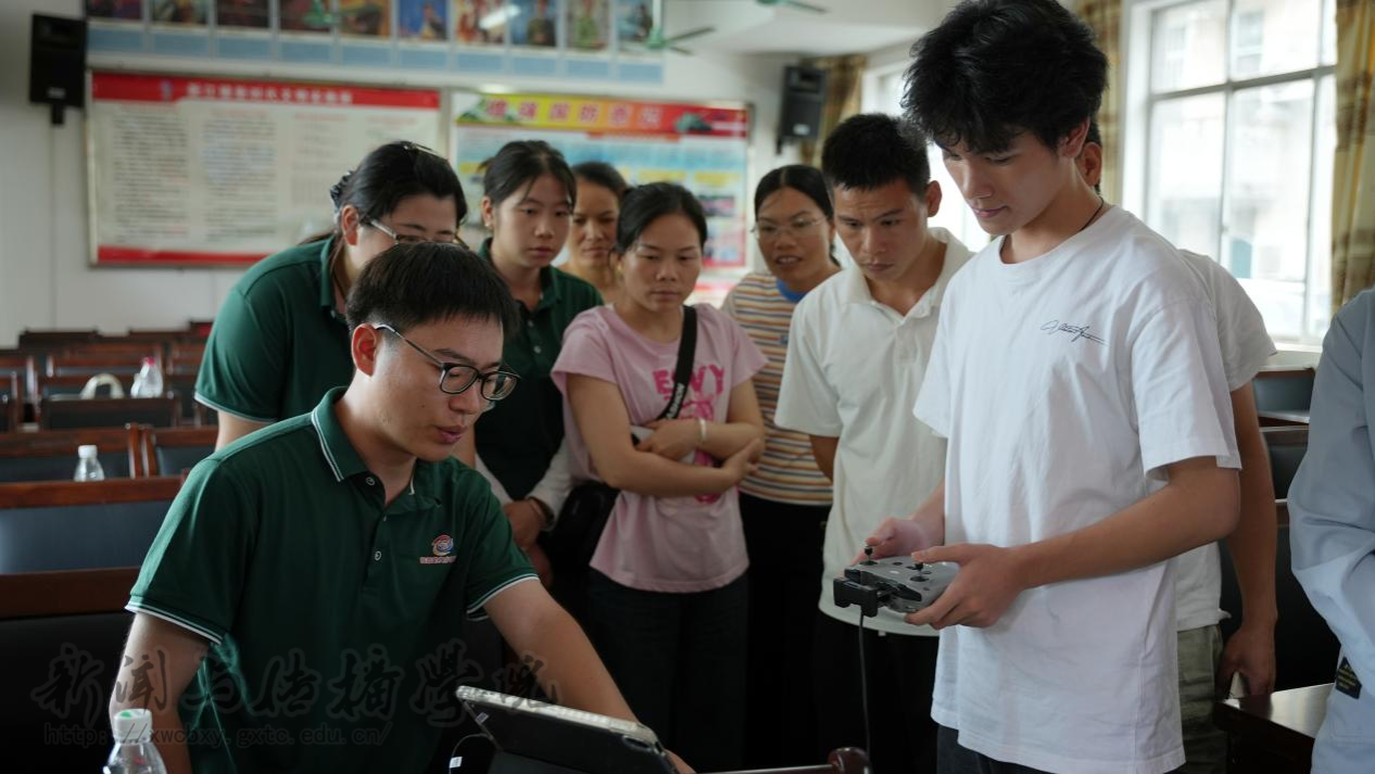 在“无人机使用”部分,实践团成员孙圣翔首先介绍了无人机的构造和使用方法,以及现今无人机的在各行各业的具体应用。在无人机飞行实操时,孙圣翔使用无人机遥控器对各个操控遥杆、按键进行操作示范,并与参会者交流心得体会。
