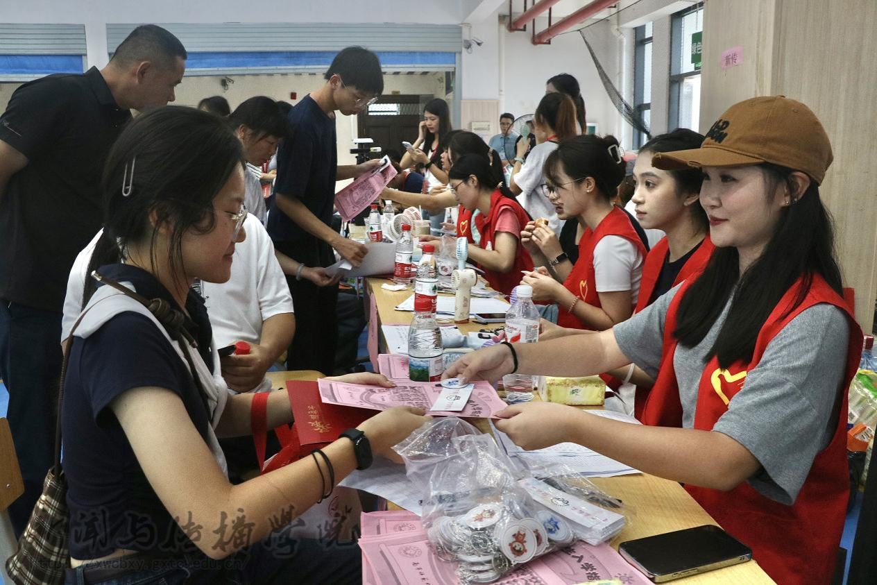 今年,学院将温情融入迎新的每一个细节之中。学院领导班子、学工办辅导员老师以及全院100余名志愿者同学齐心协力,共同参与迎新接待服务工作。学院在校内主要通道设置了醒目的标识,并安排专人进行引导,确保新生报到流程顺畅高效。志愿者们身着“小新人”和“小传人”吉祥物玩偶服,主动与新生互动,以热情洋溢的姿态迎接新生的到来。