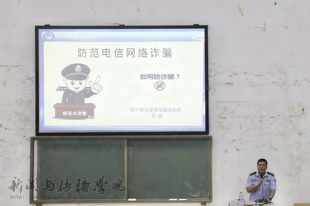 9月26日晚,新闻与传播学院在五综107、308教室同步开展防范电信网络诈骗专题宣讲活动。本次宣讲由仙葫派出所于警官和赖警官主讲,2025级全体新生参加。