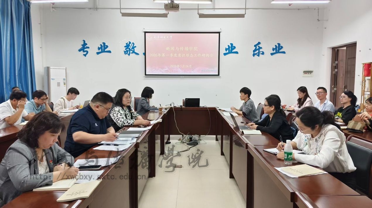 3月24日下午,新闻与传播学院于理综楼304会议室召开2026年第一季度意识形态工作研判会,学院全体教职工参加会议,会议由学院党委书记聂卉主持。