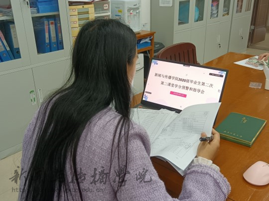 为加快二课学分申请进度,保障毕业生顺利毕业,3月21日16时,新闻与传播学院采取线上方式召开了2020级毕业生第二次第二课堂学分预警和指导会。会议由学院团委书记李樱花老师主讲,学院易班分站站长龚芸芸主持,未修满第二课堂学分的毕业生参加会议。