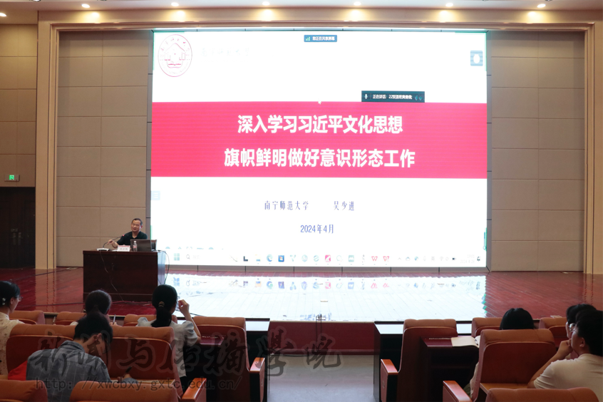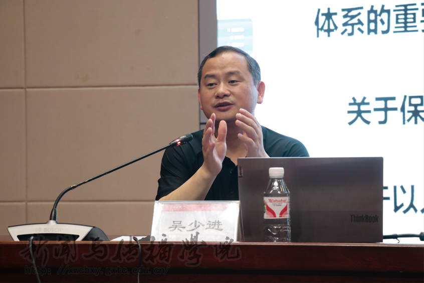 本次培训班主要围绕习近平文化思想与意识形态工作展开,深入探讨了习近平文化思想的关键作用及其在当前社会环境下的应用。吴少进教授强调了意识形态工作队伍建设的重要性,同时还强调意识形态工作从本质上促进了国内外文化交流,增强了中华文化在国际上的影响力,要进一步认识习近平文化思想的重要性,并将其视为推动国家发展和加强国家安全战略的一部分。