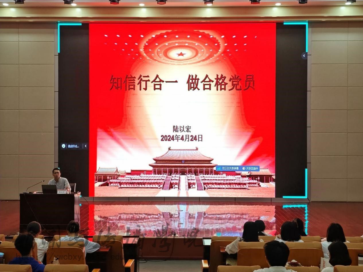 为进一步增强预备党员的党性修养, 4月24日晚,新闻与传播学院分党校在文综楼114报告厅举行第20期预备党员培训班第一讲,本次培训由初等教育学院党委书记陆以宏主讲。