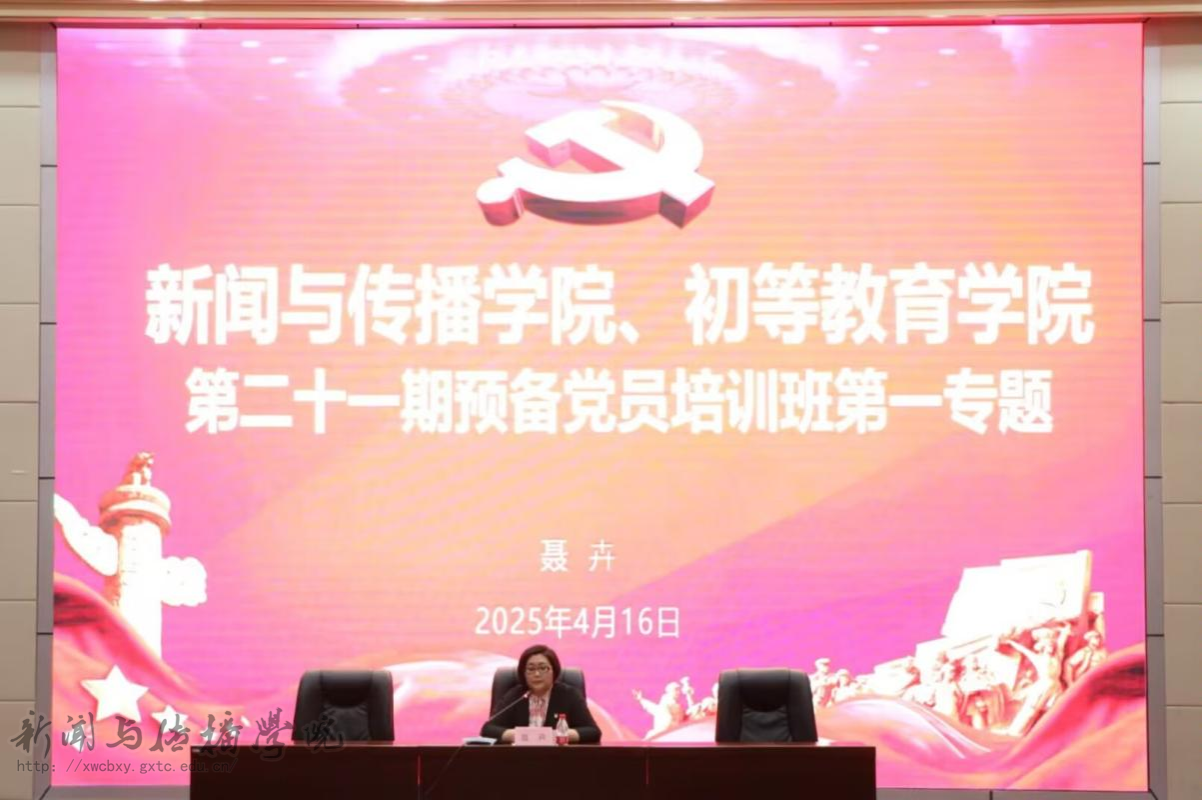 4月16日晚,新闻与传播学院、初等教育学院在文综楼114报告厅联合举办第二十一期预备党员培训班第一专题学习。本次专题学习由新闻与传播学院党委书记聂卉主讲。