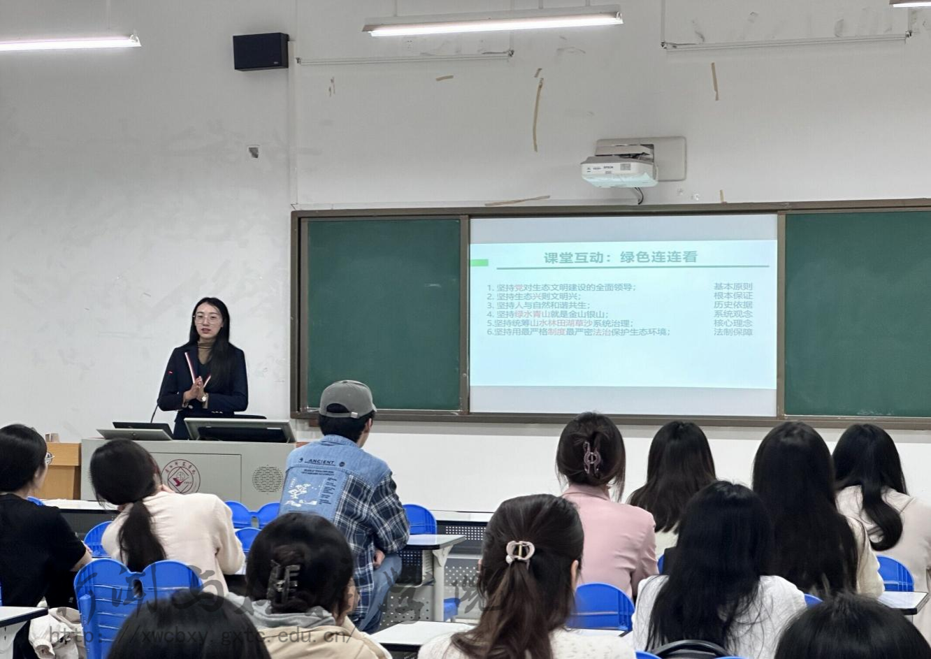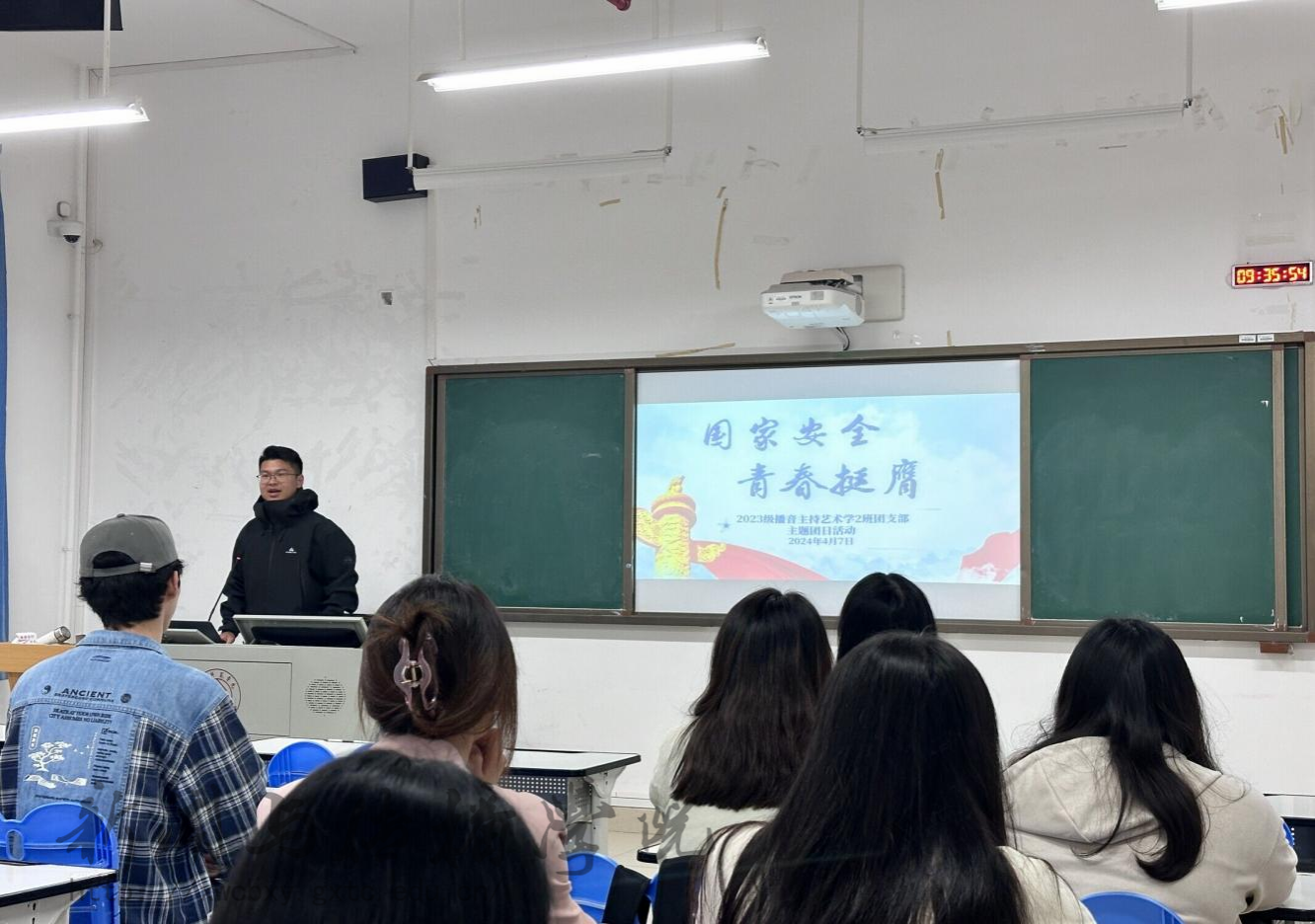 此外,学院团委书记李樱花老师到播音与主持艺术学2023级2班团支部进行生态安全主题宣讲。她通过一系列生动的案例,让大家深刻认识到生态安全在国家安全中的重要地位。并提倡同学们在今后的学习生活中,从身边小事做起,积极参与环保活动,以实际行动保护生态安全。