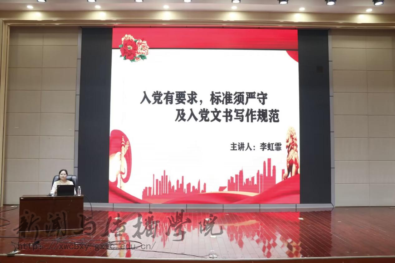 11月20日晚,本科生第一党支部书记李虹霏老师于文综楼114报告厅面向第62期入党积极分子培训班学院讲授了一堂以《入党有要求,标准须严守》为主题的党课。