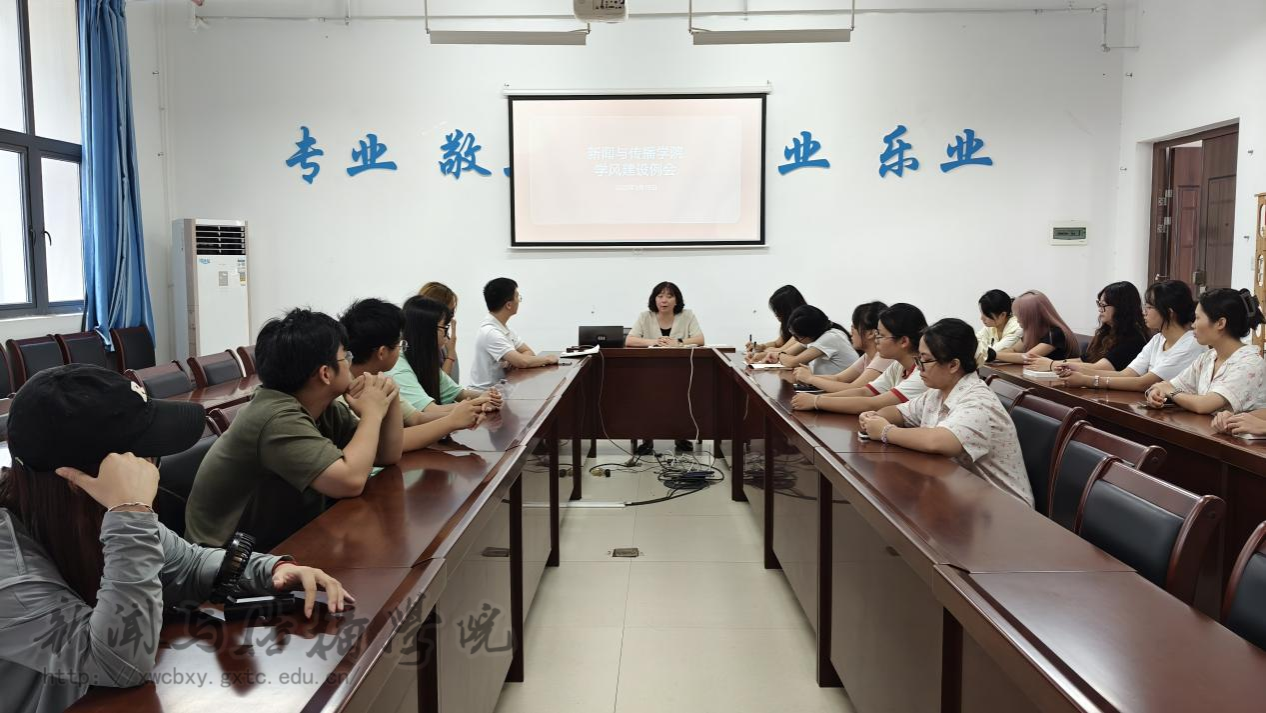 9月18日上午,新闻与传播学院召开学风建设工作例会。学院党委副书记黄敏、学工办辅导员覃力以及各班纪检委员到场参加。