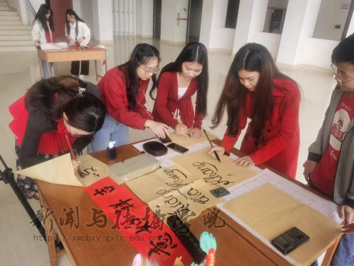 2024年1月7日,南宁师范大学新闻与传播学院科研平台“广西一带一路对外传播与国际文明互鉴研究中心”举办了一场主题为“东盟人·迎新春”的书法春联联合活动。本次活动特别邀请了新闻与传播学院院长陈洪波教授、学院教师陈秋凌教授,以及来自泰国、老挝、越南、缅甸等多个东盟国家的留学生们。