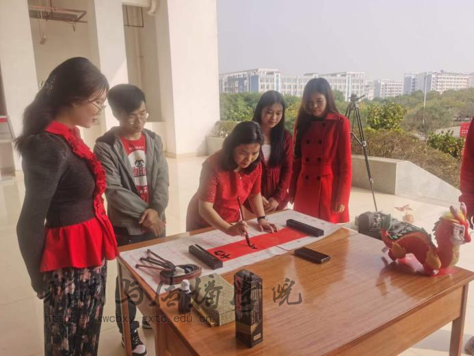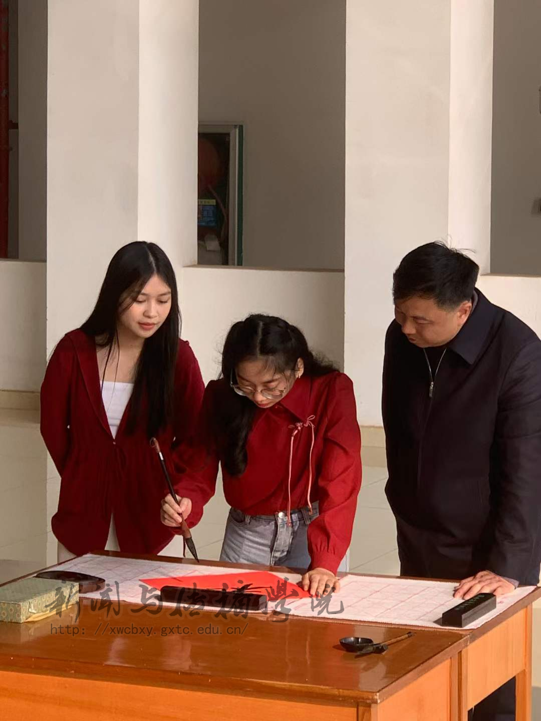 图1 陈洪波教授指导泰国留学生冯春雨(中)写春联