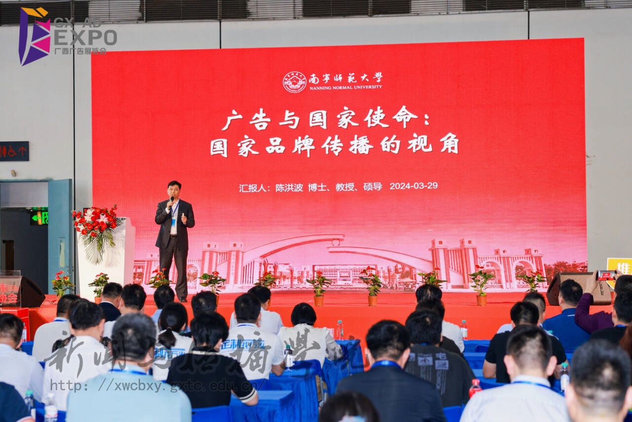 2024年3月29日,我院广告系师生在陈洪波院长带领下在南宁国际会展中心参加第25届广西广告展,陈洪波院长、王乃考教授作为演讲嘉宾在2024年广西广告传媒与标识融合发展论坛上做主题发言。论坛由南宁市广告协会、广西标识行业协会主办,来自广西有关政府部门、广告行业相关协会、企业、高校师生等200余人参加活动。