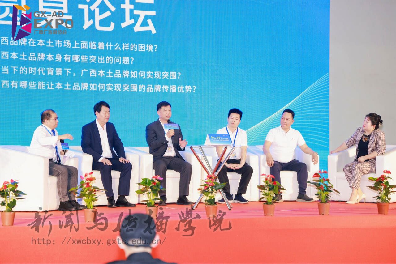 在圆桌论坛环节,我院院长陈洪波教授与广西商贸服务业发展促进会会长 、广西大学工商管理学院研究生导师—许锋利,广西质量工程职业技术学院广告学院院长、广西工艺美术协会常务副理事长—韦锦业,广西标识行业协会会长—尹峰,南宁市广告协会会长彭贵就“区域性品牌该如何从品牌传播上实现突围”这一议题展开了讨论。圆桌论坛由我院王乃考教授主持,各位专家、行业带头人重点讨论了以下三个方面:广西品牌在本土市场上如何打造品牌影响力与市场号召力?在当下的时代背景下,广西本土品牌有哪些突围途径?广西有哪些能让本土品牌实现突围的品牌传播优势?各位专业和代表嘉宾展开了积极探讨,发表个人专业上的见解和建议。