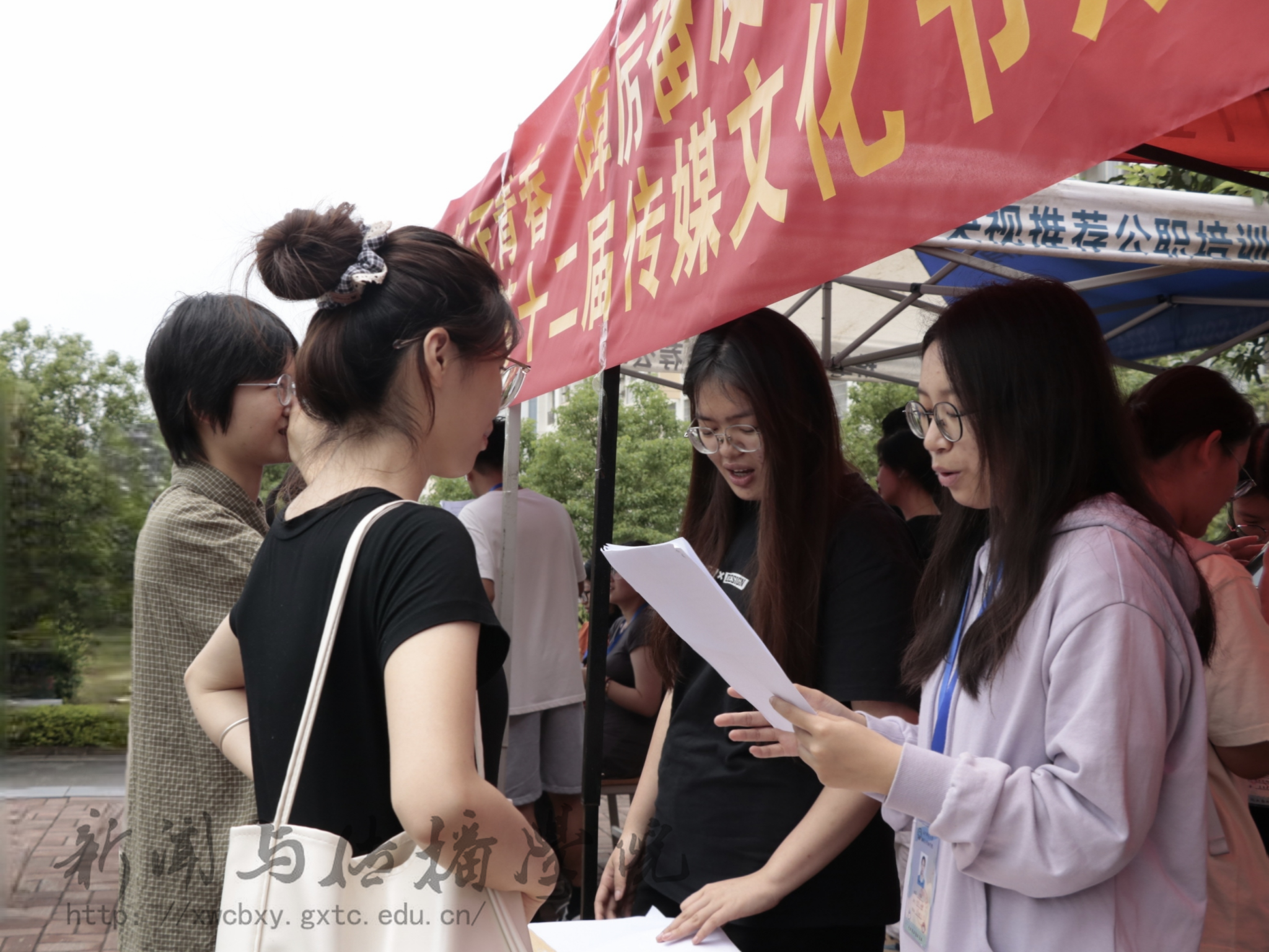 为展示第十二届传媒文化节学生优秀作品,丰富校园文化活动。4月23日中午,我院于五合校区食堂一楼门口进行第十二届传媒文化节成果展示。