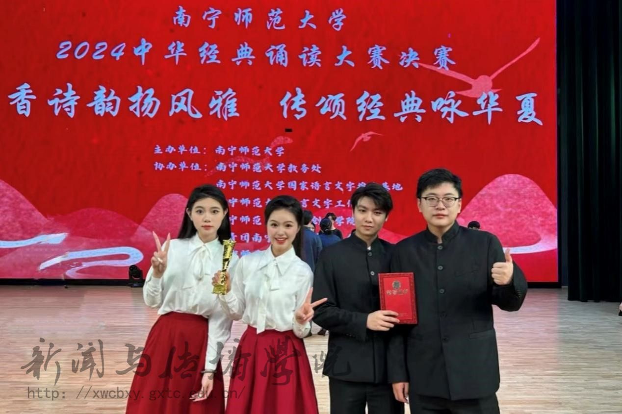 5月18日晚,2024年中华经典诵读大赛决赛在武鸣校区音舞楼1号报告厅正式落幕,我院22播主班学子参赛的经典朗诵作品《请铭记,雾重庆》和《永远飘扬的红头巾》均荣获团体赛一等奖。