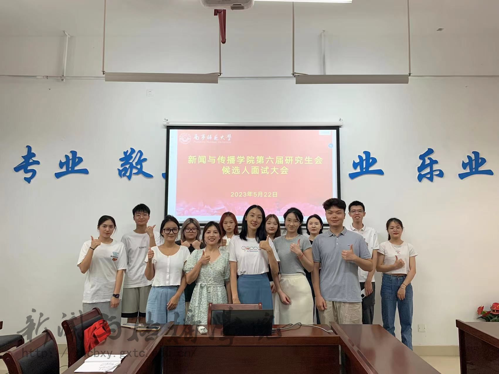 5月22日中午,新闻与传播学院第六届研究生会候选人面试大会在理综楼304会议室顺利开展。由学院团委书记李樱花和研会主席团成员担任本次面试大会的面试官。