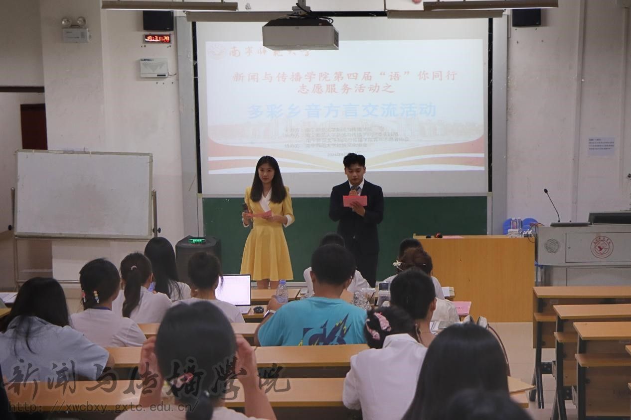 6月21日晚,我院于文综415教室开展第四届“语”你同行志愿服务活动之多彩乡音方言交流活动。本次活动由23播主2班陈照林、谢锦怡主持,我院以及各兄弟学院代表队伍参与。
