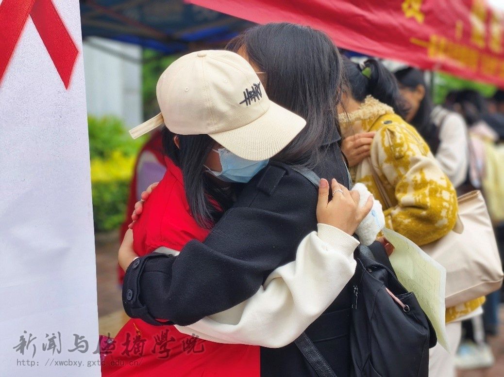 (参与同学与扮演艾滋病的志愿者拥抱)