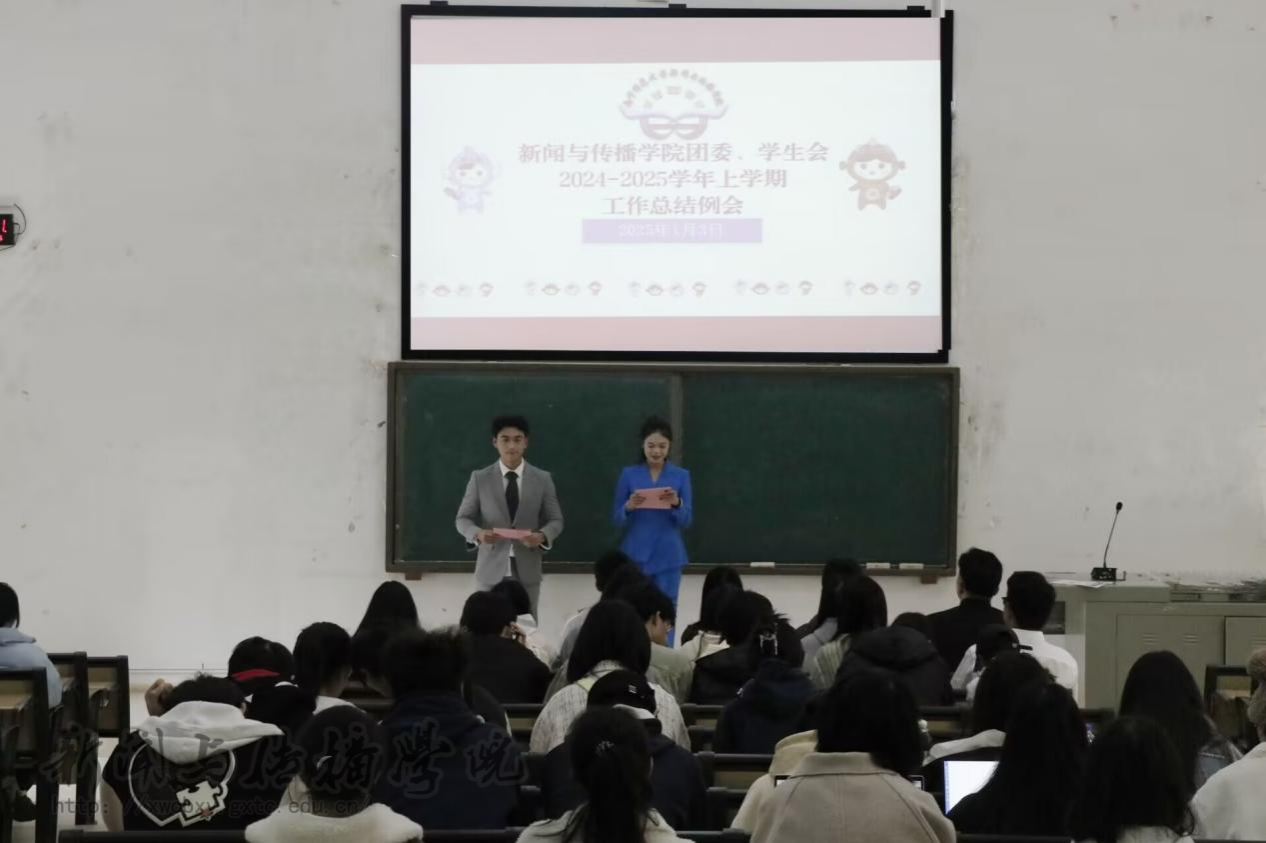 1月3日,新闻与传播学院在五综308举行了团委、学生会2024年秋季学期期末总结大会。学院团委书记李樱花、学工办辅导员兰浩玮以及团委、学生会干部出席了会议,会议由学生会秘书部志愿者姚富豪、黄雨瑶主持。
