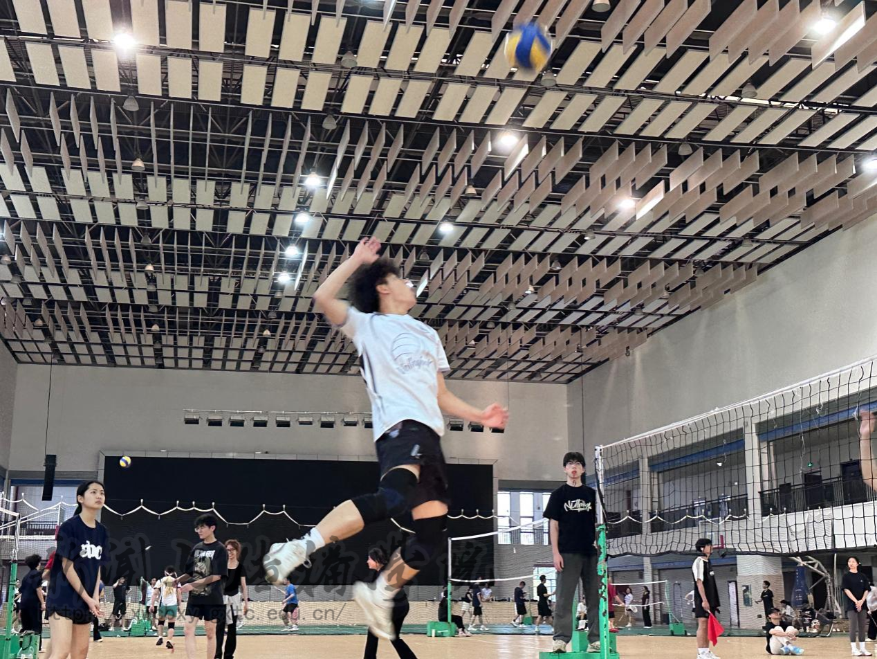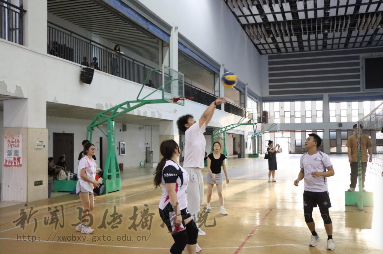 4月15日傍晚,新闻与传播学院2025年“新闻人杯”气排球赛第七场、第八场和第九场在学校体育馆1、2号排球场激烈开赛。