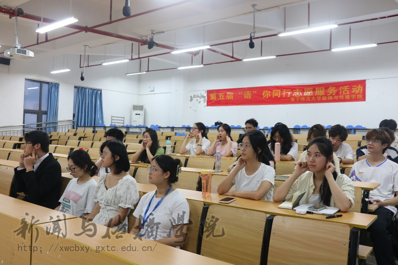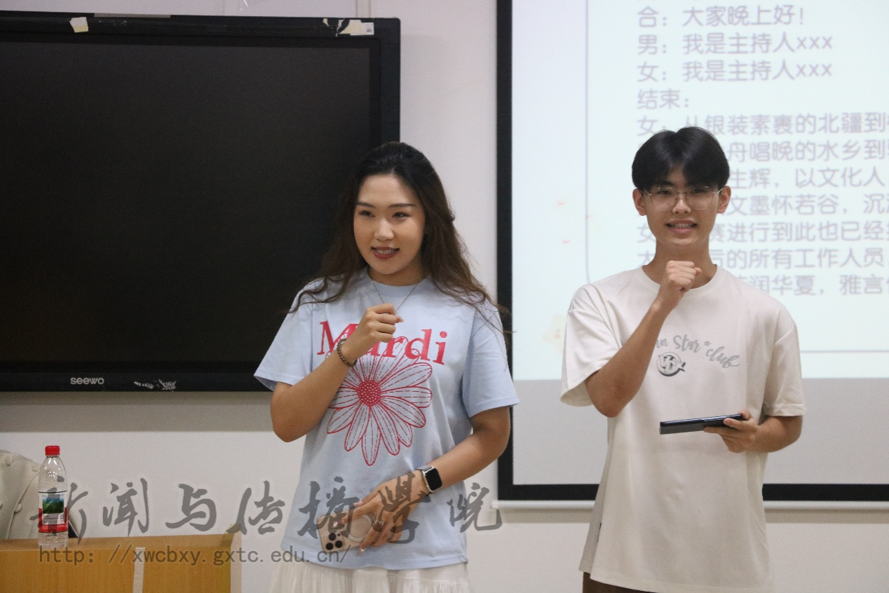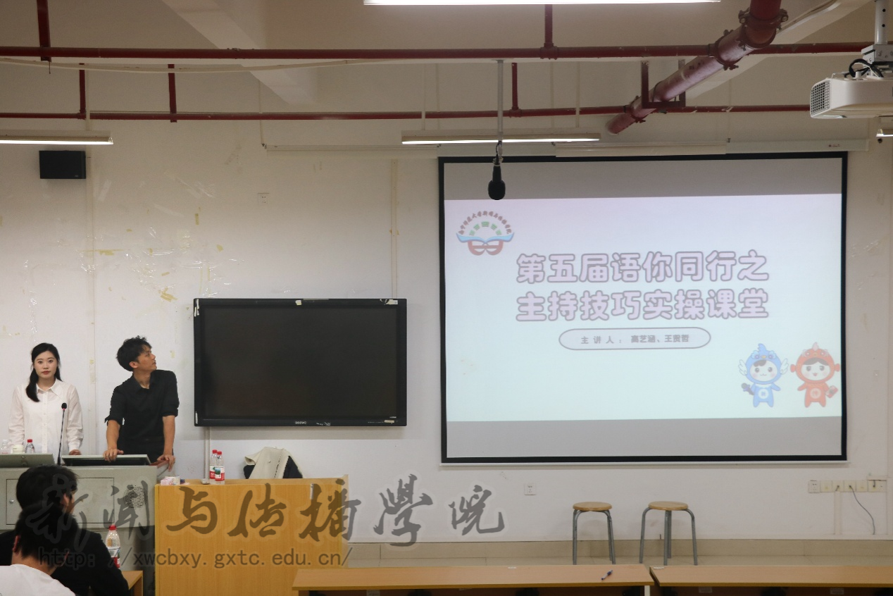 6月5日晚,新闻与传播学院在文综601教室举办第五届“语”你同行志愿服务活动之主持技巧第四讲。本次课程由23播主2班高艺涵、王贤哲同学主讲,24播主1班王志睿同学担任助教,现场共有21名同学参加。