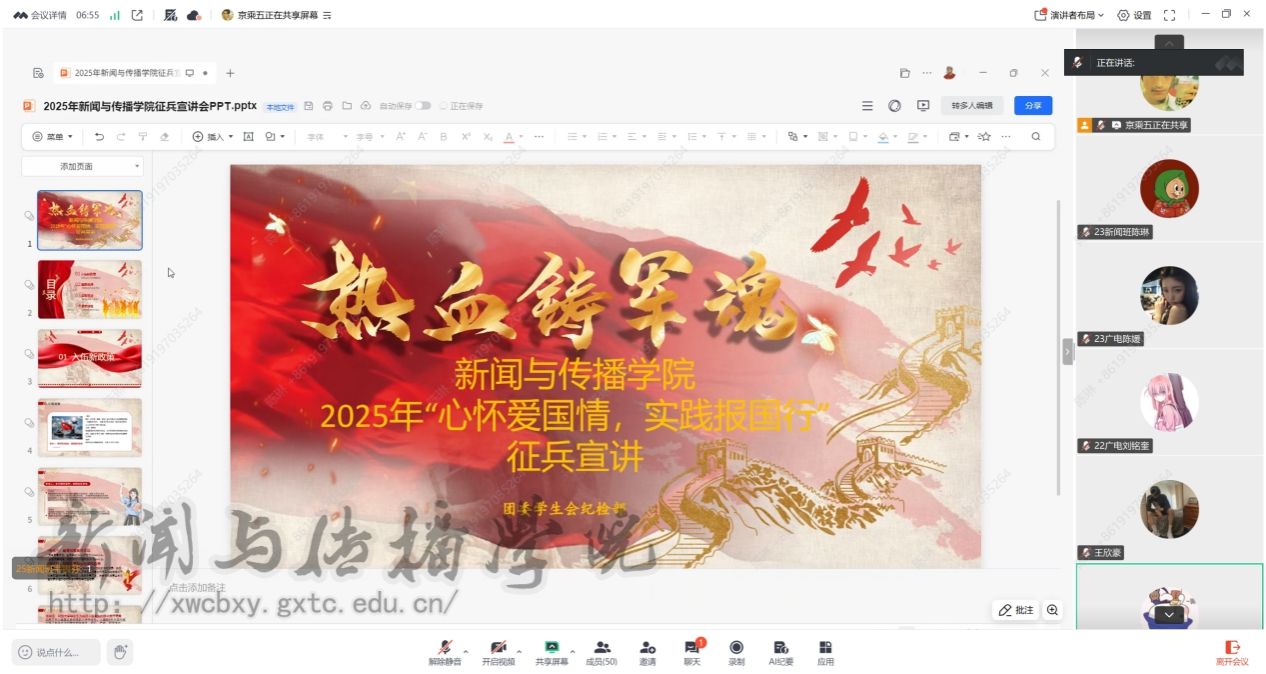 心怀爱国情,力行报国志 ——新闻与传播学院召开2025年下半年线上征兵宣讲会议
