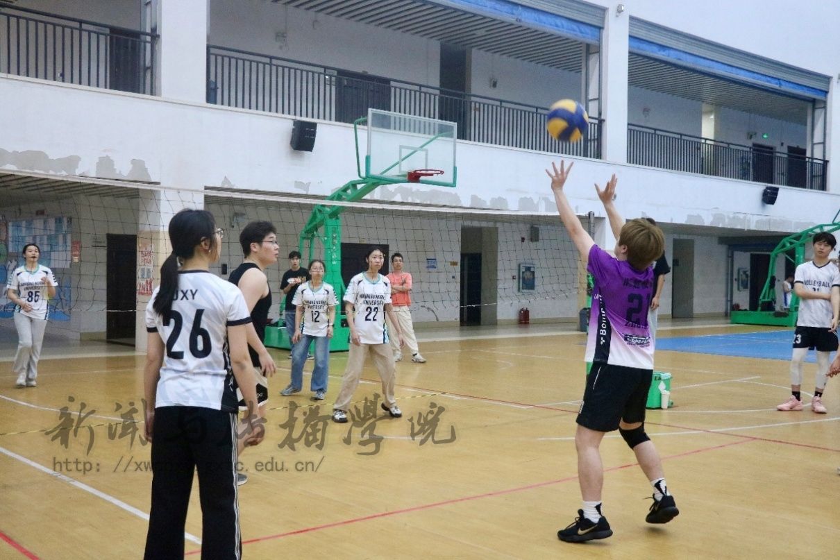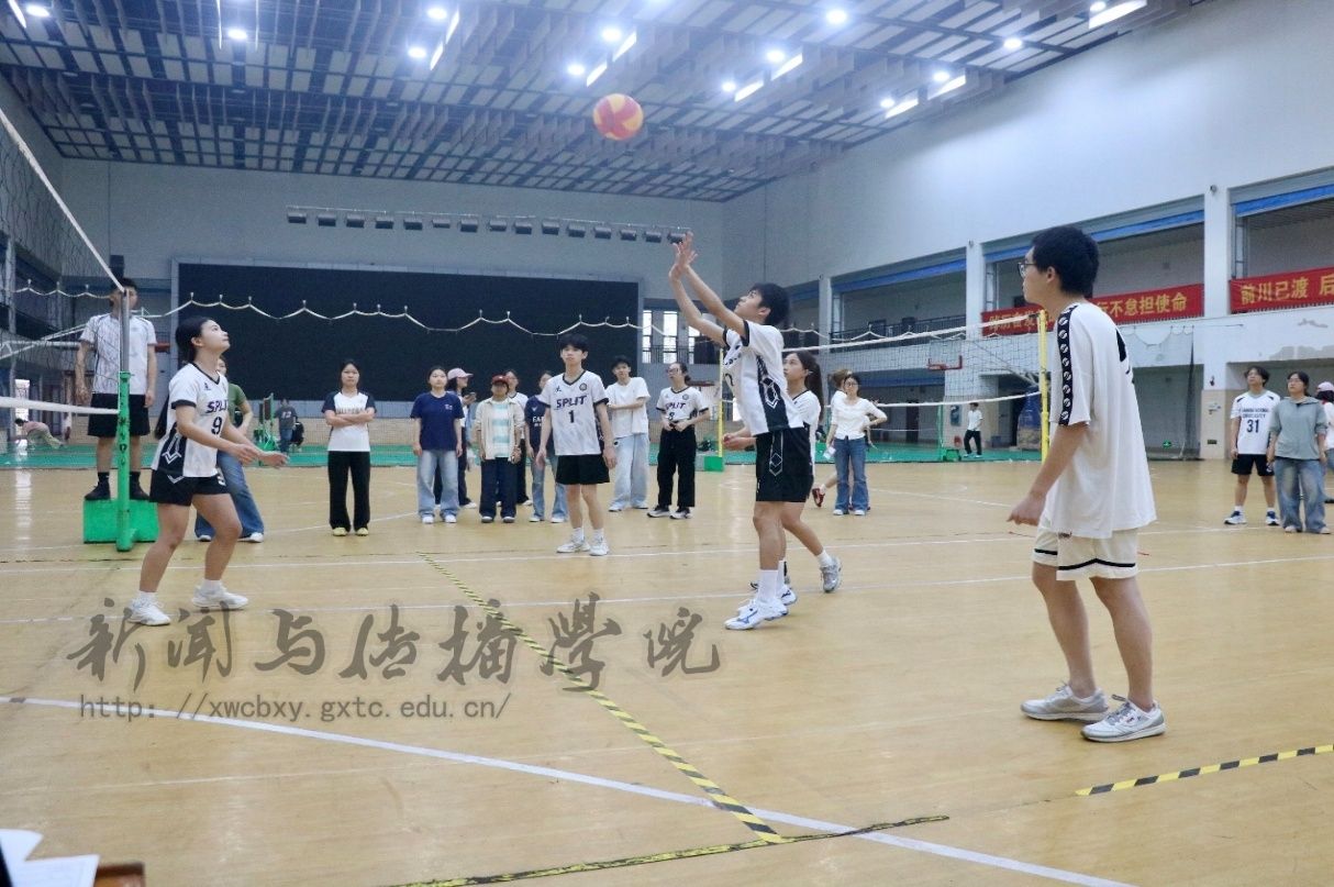 3月24日晚,新闻与传播学院2026年“八桂绣球杯”气排球比赛第三场、第四场在五合校区体育馆1号、2号排球场进行。