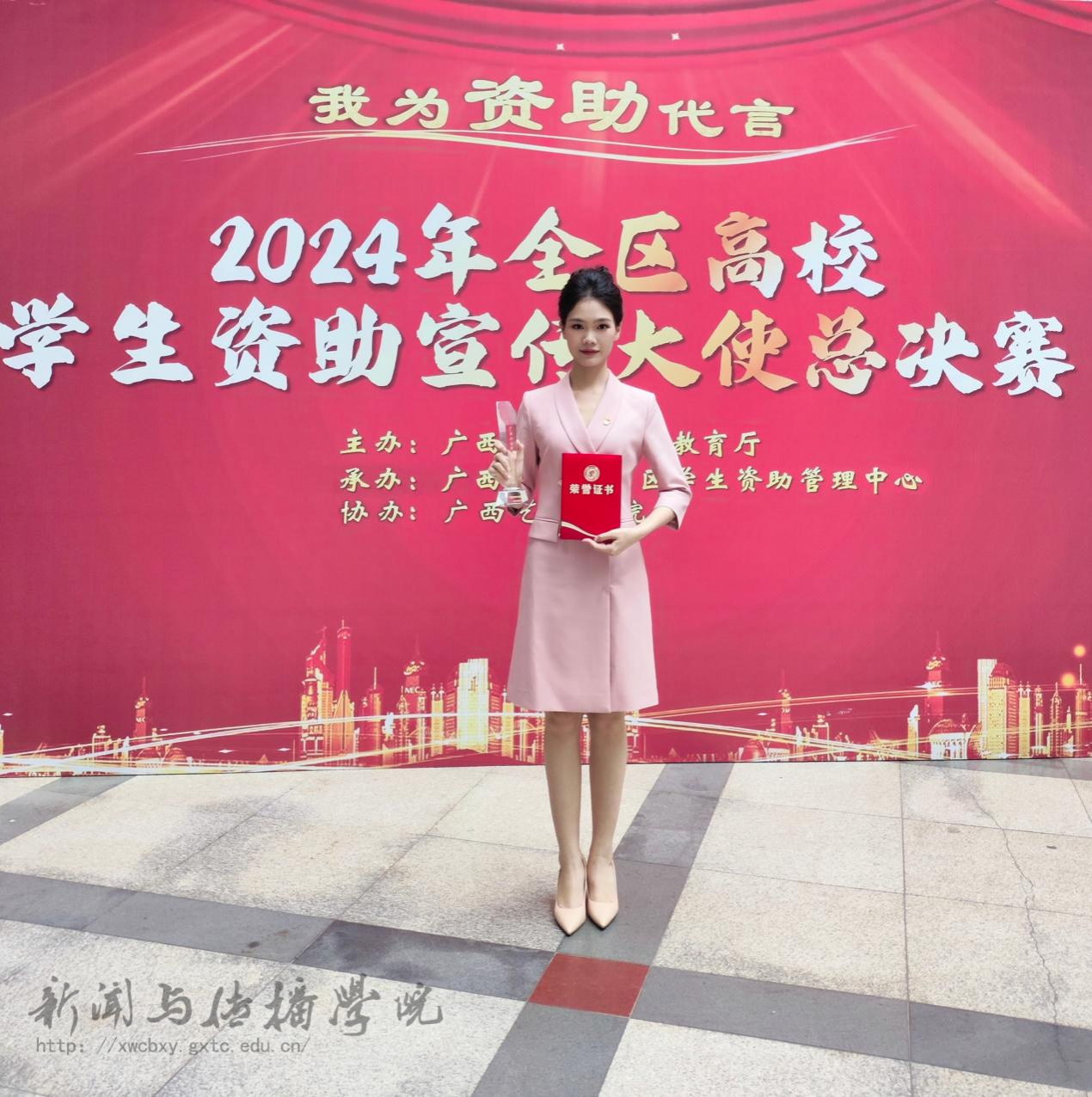 11月24日,来自我院2021级播音与主持艺术专业的莫铭同学代表学校参加了2024年“我为资助代言”全区高校学生资助宣传大使总决赛,并获得“广西十佳学生资助宣传大使”称号。