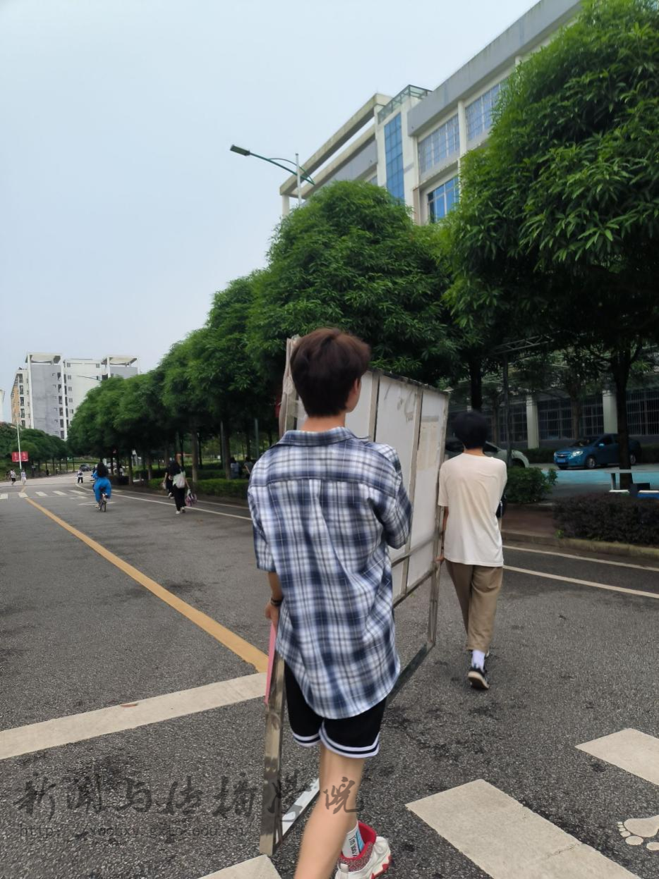 (学生搬运展板)