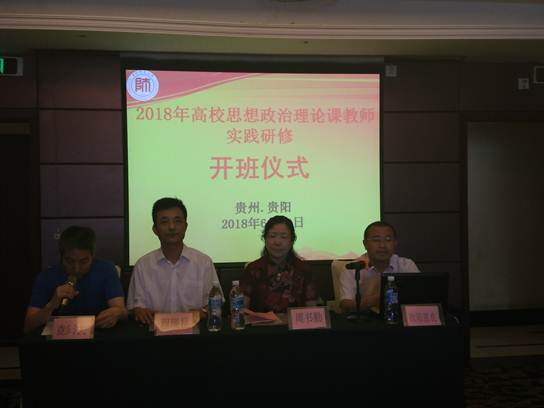 2018年6月10日上午,教育部“全国高校思想政治理论课教师实践研修基地(贵州师范大学)”2018年度暑期研修活动(第一期)在我院正式开班。参加本次研修活动的有来自安阳师范学院、大连医科大学、黑龙江科技大学等3所高校的23名思想政治理论课教师。我院院长欧阳恩良、安阳师范学院马克思主义学院院长周书勤、大连医科大学马克思主义学院研究生思政课教研室主任程现昆等在开班仪式上致辞和讲话。开班仪式由学院副院长兼党委副书记彭法主持。