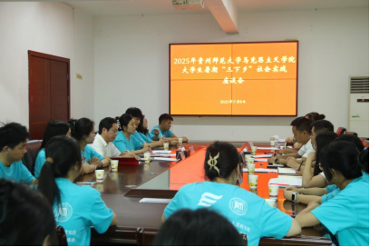 7月15日,马克思主义学院2025暑期“三下乡”社会实践活动总结大会在息烽县流长镇人民政府三楼会议室举行,辅导员梁家敏与 20 名队员参会,回顾历程、总结成果。梁家敏强调,活动围绕“理论落地”与“服务群众”展开,队员实现了理论宣讲和乡村融入的提升,以实践体悟初心、用行动彰显担当。心得分享中,队员们说到,通过七天的实践拓宽了视野、锻炼了能力,明确了使命担当,但在调研深度、宣讲形式创新等方面还有所不足,今后将总结经验,以更加昂扬的心态和坚定的信仰推动习近平新时代中国特色社会主义思想深入寻常百姓家。